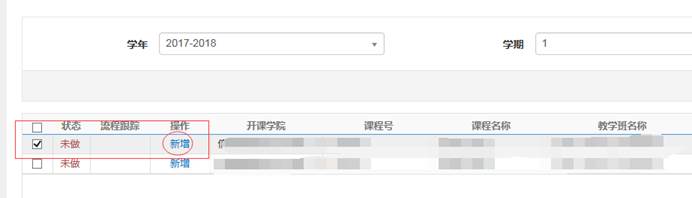 2.进入“教学日历维护”界面,选择拟录入教学日历内容的课程名称(可根据括号内的选课课号判断教学班),点击“新增”进入“新增教学日历”页面。