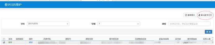 8.打印:在“教学日历维护”页面,在需打印的课程名称前打勾,然后右上方点击“输出教学日历”后进行打印。