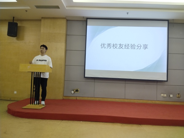 郭纪梁员工从与同学们的互动中展开话题,分享个人毕业之后的就业、升学经历。首先他郭纪梁首先帮助同学们分析自己未来的发展路径及方向。其次从行业的角度分析行业对老员工的招聘标准;告诫同学们要先有目标,然后并为之努力奋斗,深入剖析选择的重要性,并要学会勇敢面对未知的挑战;最后分享个人求职技巧和升学经验等干货。