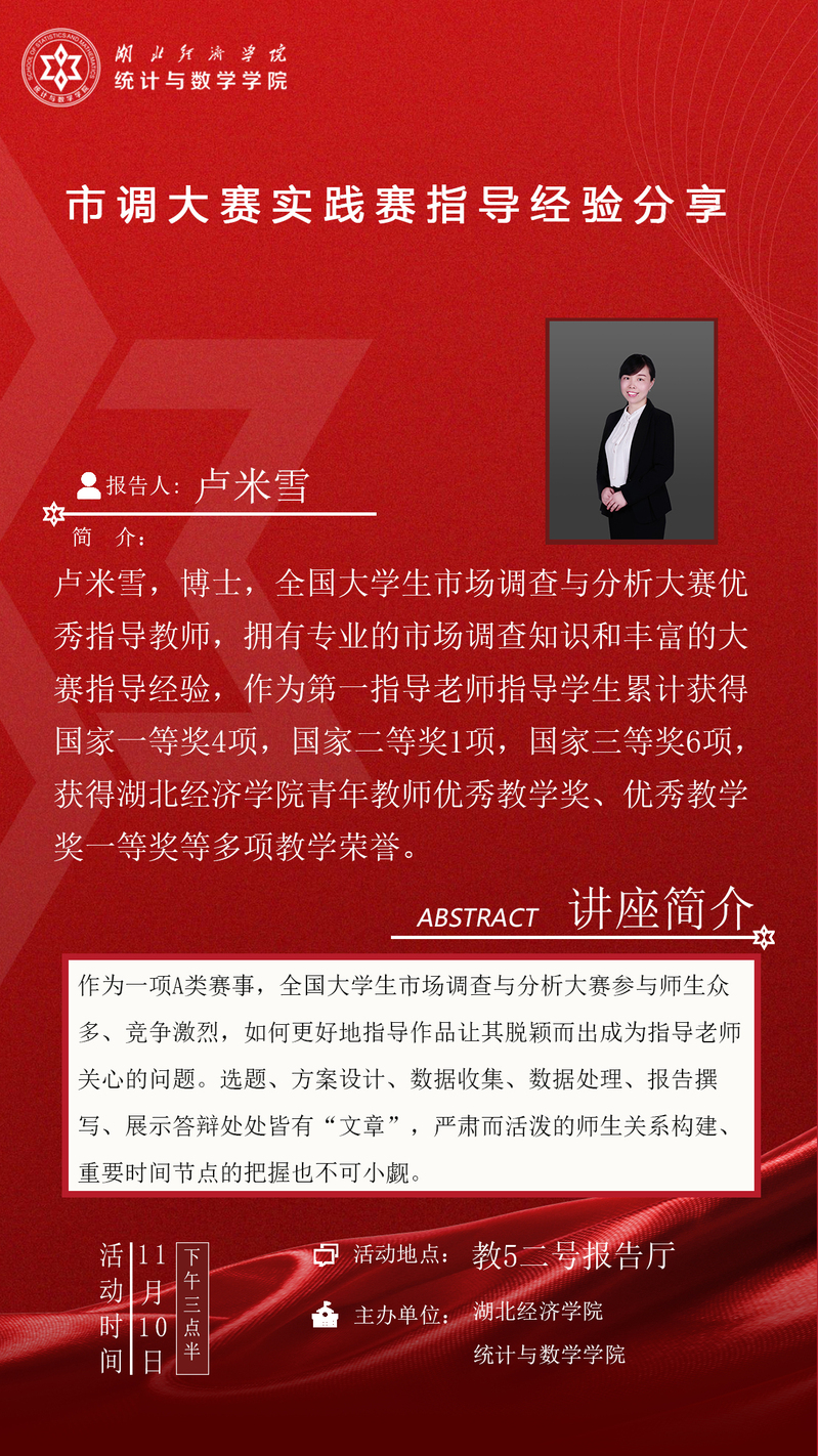 15:40-16:30 | 市调大赛实践赛指导经验分享 | 主讲人:卢米雪 (伟德国际VICTOR1946) |